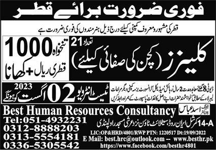 Best Human Resources Consultancy invites applications for job positions advertised in daily Express dated 27 July 2023 for following vacancies in Qatar, qatar Qatar.